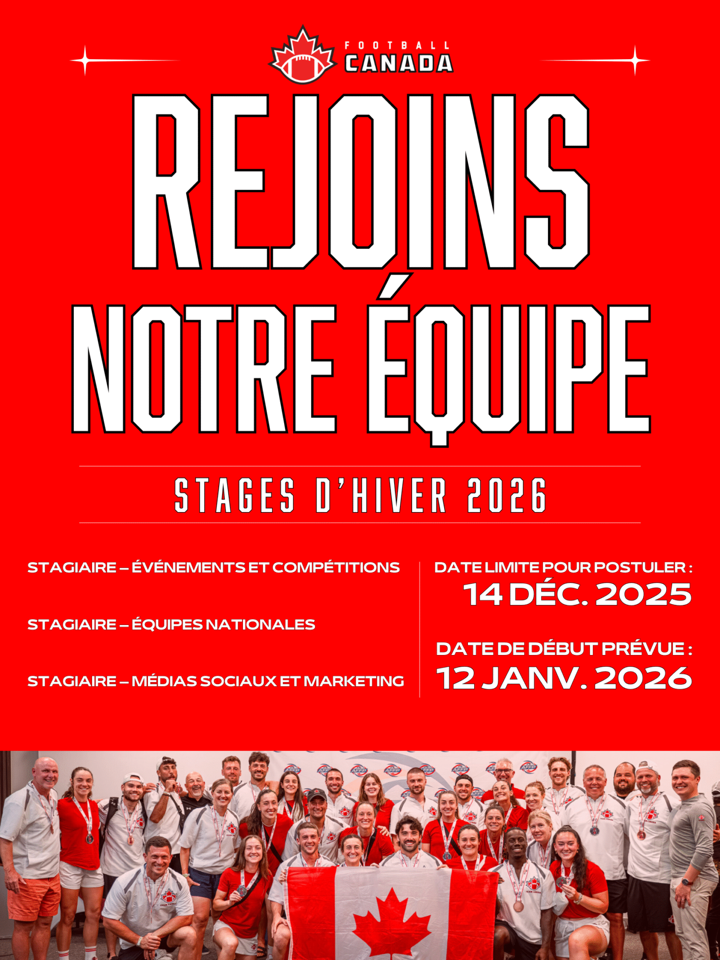 Football Canada encourage les candidatures provenant de personnes poursuivant ou ayant récemment complété des études en gestion du sport, marketing, communications, kinésiologie, gestion d’événements, administration, médias ou domaines connexes.